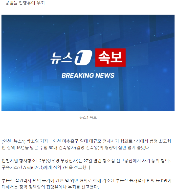 [속보] 인천 전세사기 건축왕 2심서 징역 7년…형량 크게 줄어