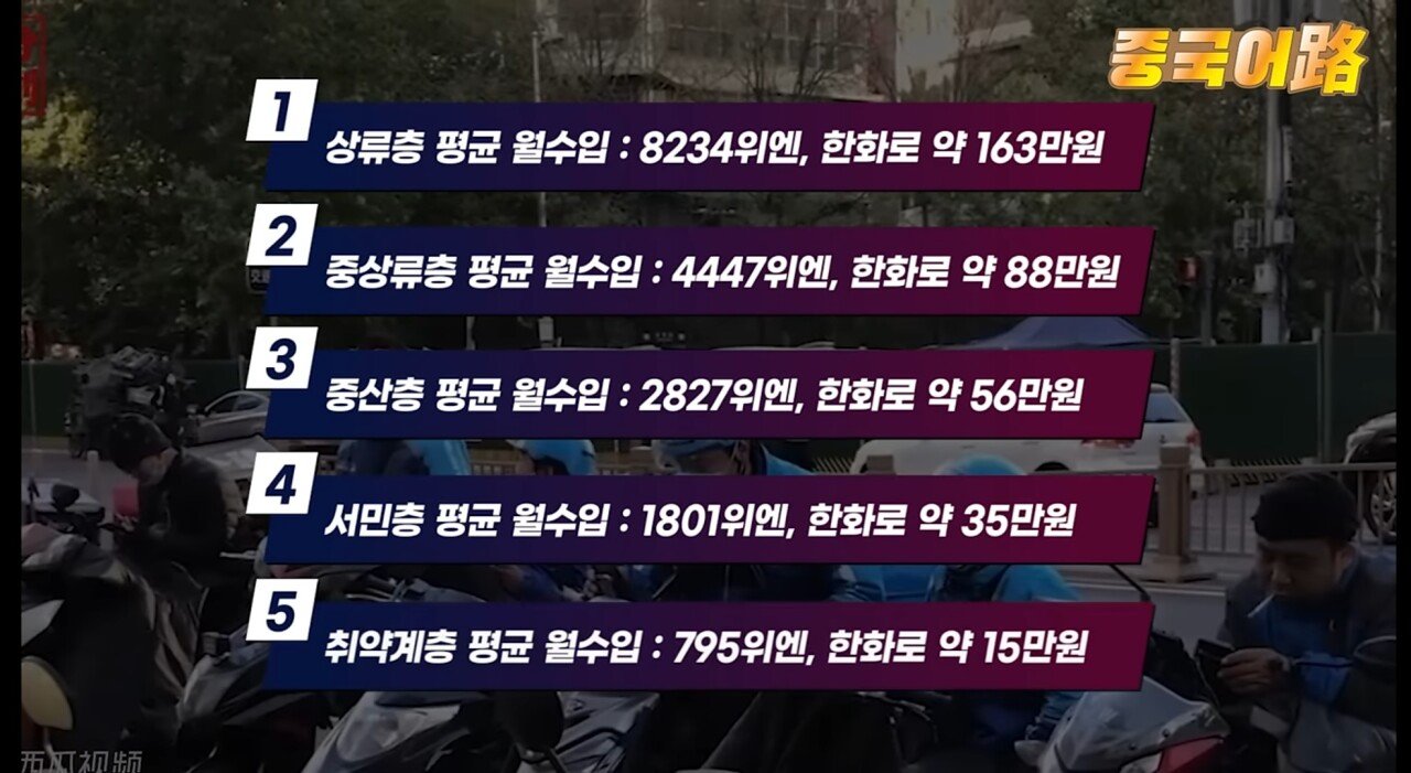 어느 유튜브에 올라온 중국인들의 평균월수입