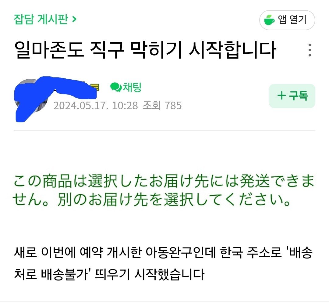 펌) 오늘부터 일마존 한국 배송 불가상품에 상품공지.jpg