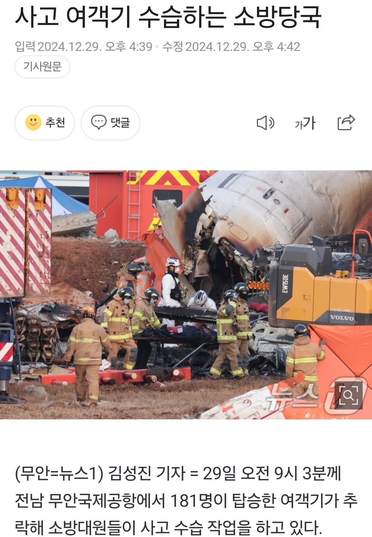 사고 여객기 수습하는 소방당국