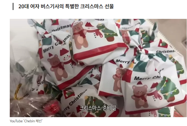 유튜버 체빈은 크리스마스 하루 전, 직접 핫팩과 과자, 음료 등을 준비해 일일이 다 포장했다. 그리고 동료 직원들에게 줄 손편지까지 직접 썼다.