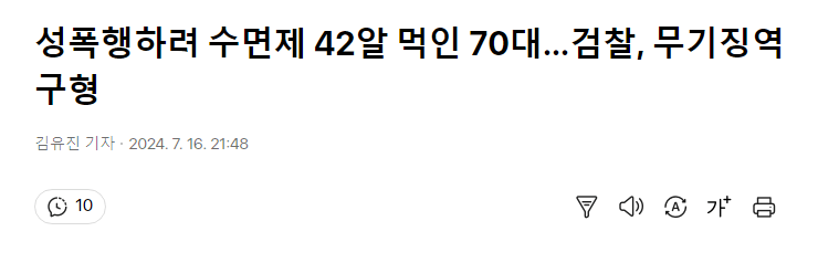 성폭행하려 수면제 42알 먹인 70대…검찰, 무기징역 구형