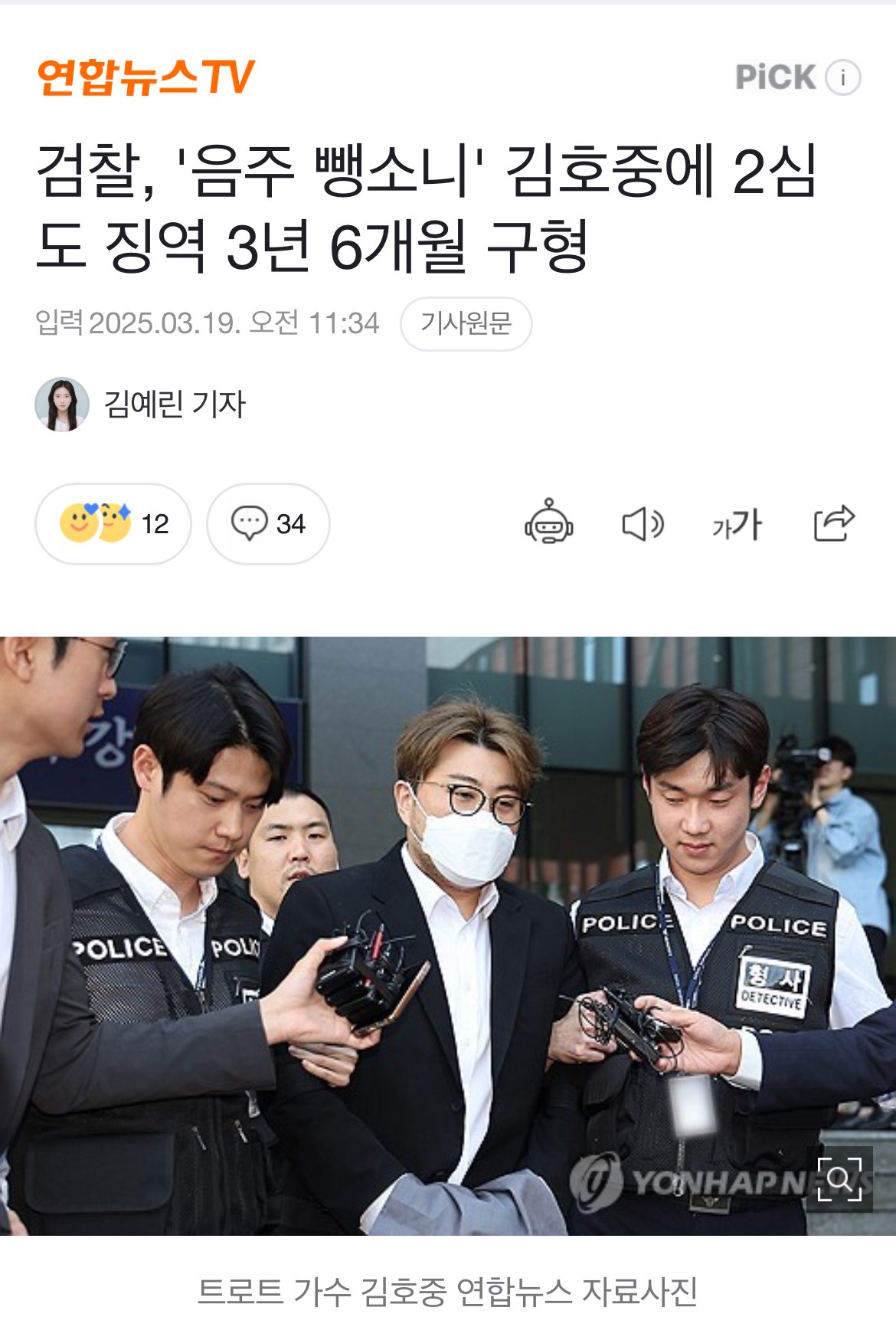 검찰, '음주 뺑소니' 김호중에 2심도 징역 3년 6개월 구형