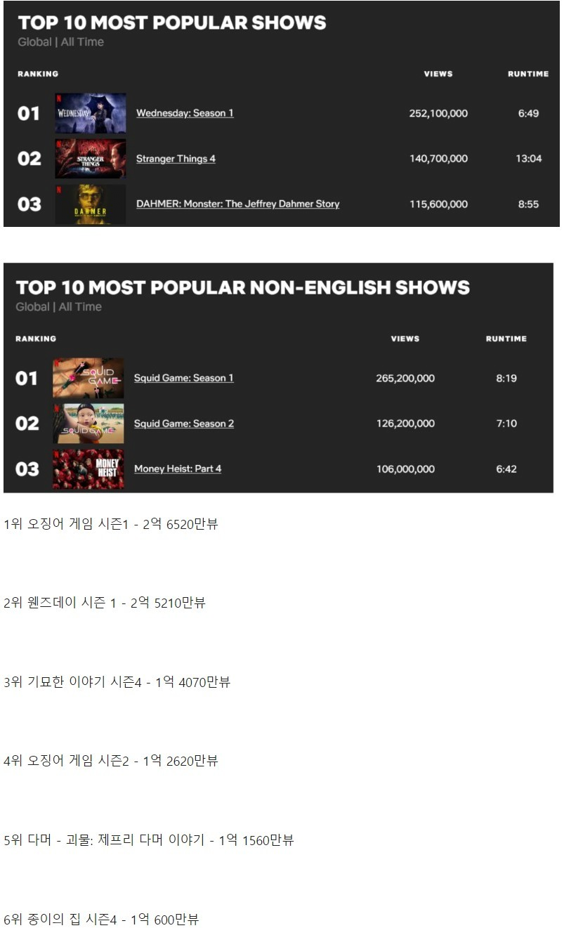 오겜2 공개 2주만에 누적뷰 역대 4위 등극