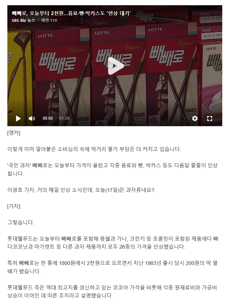 빼빼로, 오늘부터 2천원…음료·빵·박카스도 '인상 대기'