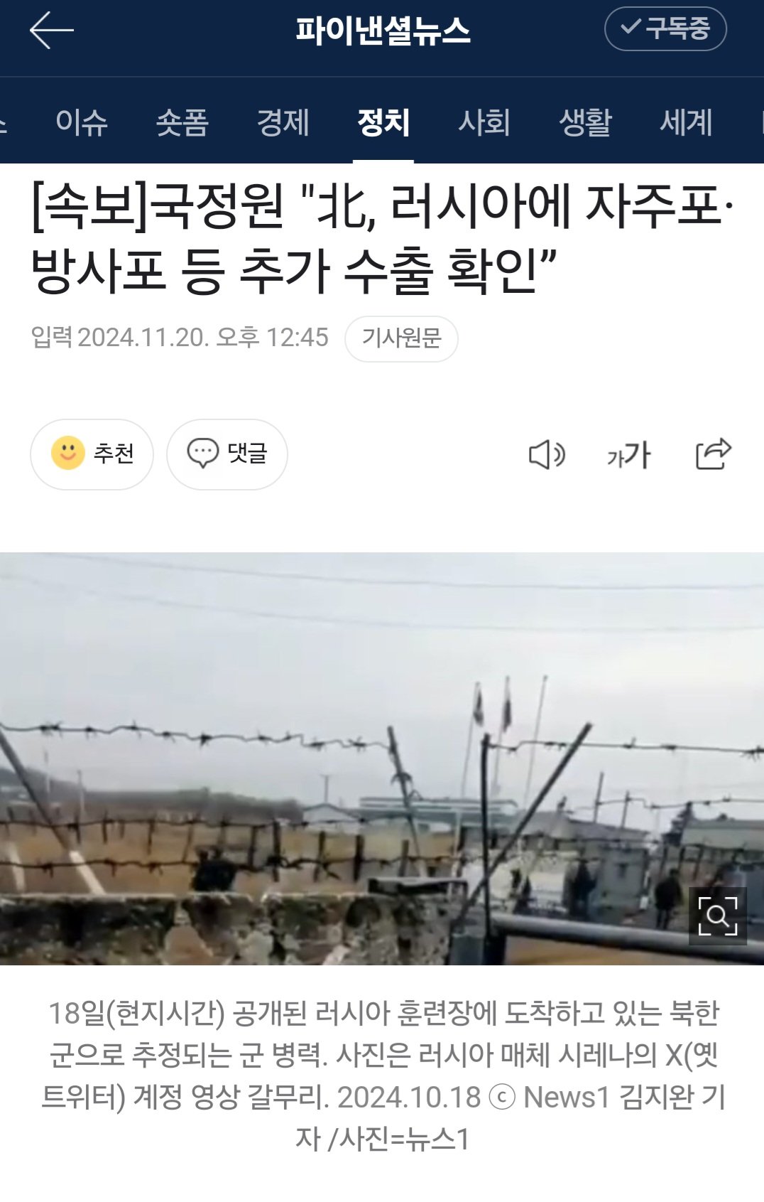 [속보]국정원 "北, 러시아에 자주포·방사포 등 추가 수출 확인”