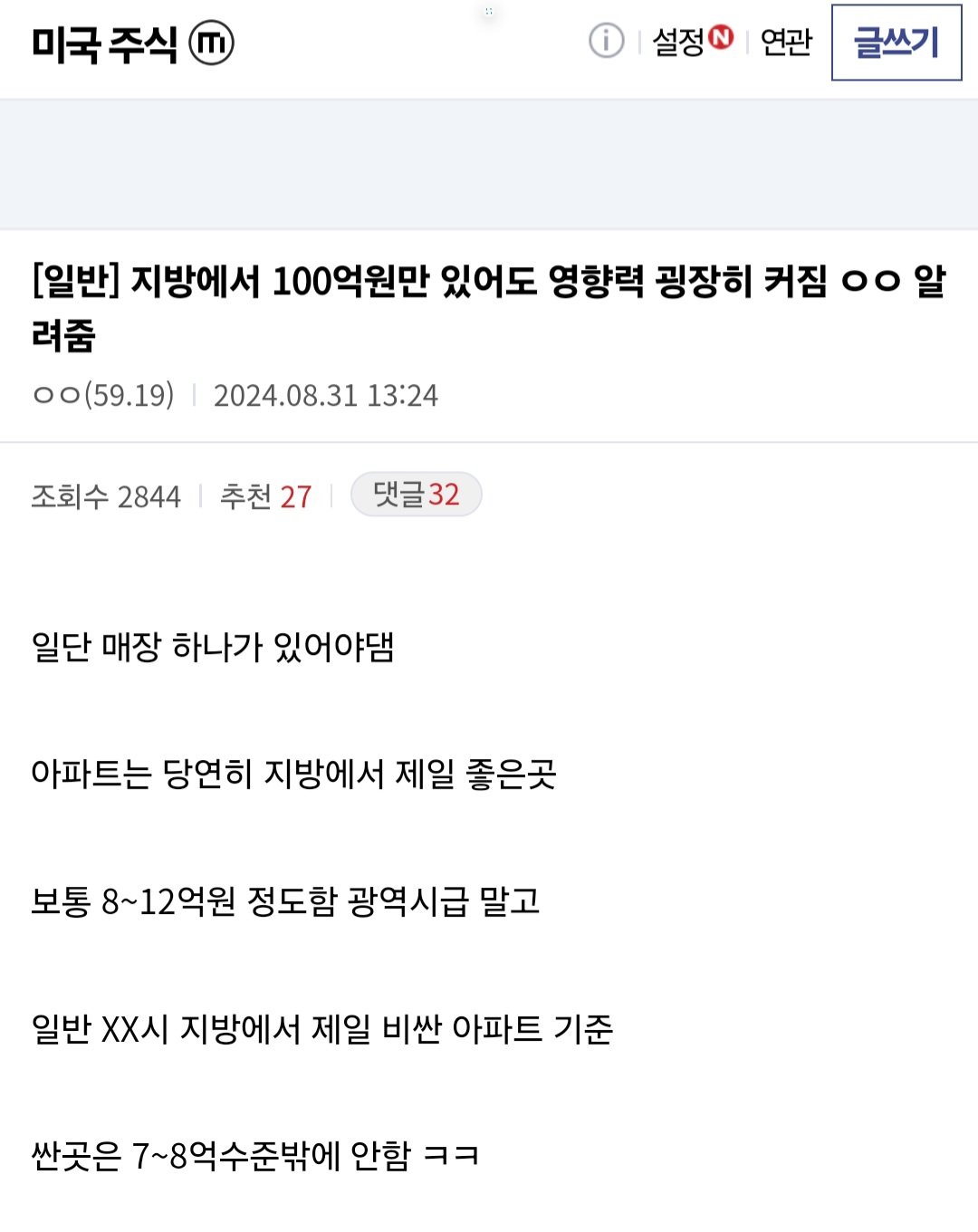 지방에서 100억만 있어도 영향력이 굉장히 커진다는 미주갤러
