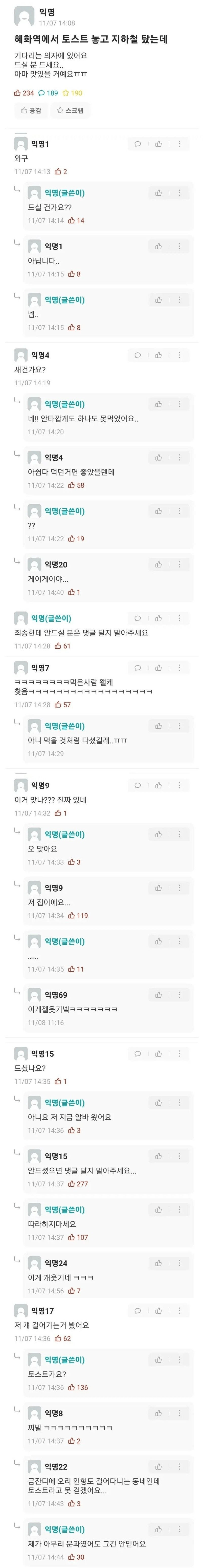 서브웨이에 토스트 놓고온 에타인