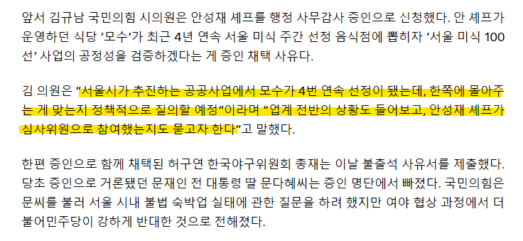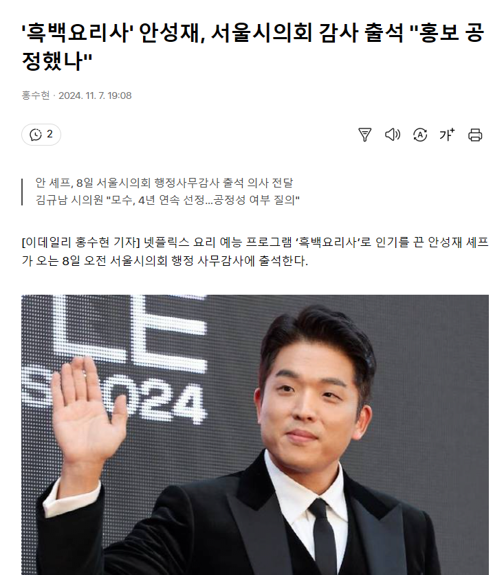 '흑백요리사' 안성재, 서울시의회 감사 출석 "홍보 공정했는지, 4년 연속 한쪽에 몰아주는 게 맞는지 "