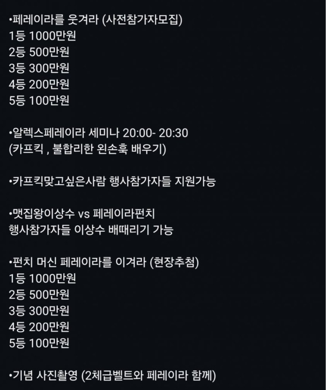 UFC 챔피언 페레이라 한국 세미나 일정 떴냐