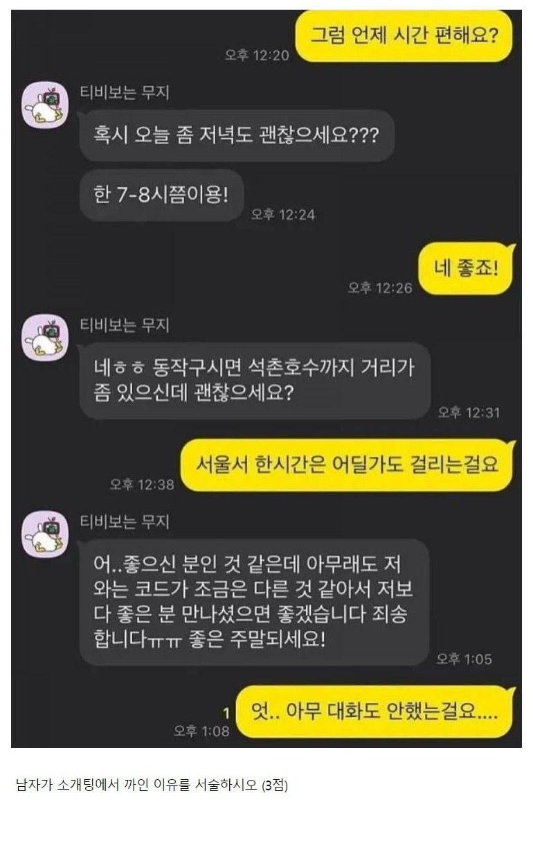 카톡하면서 남자가 소개팅에서 까인 이유