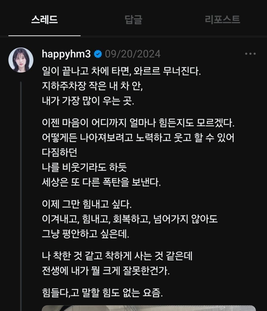 故 오요안나 고인이 된지 5일 후 박하명 인스타 쓰레드 글.jpg