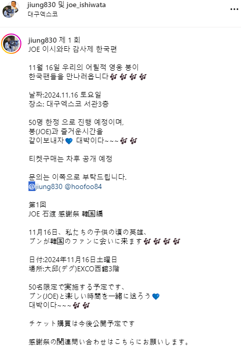 후뢰시 블루 이시와타상이 대구에서 이벤트를 진행할 예정