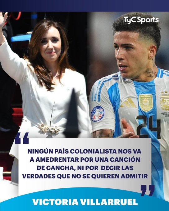 "어떤 식민주의 국가도 노래 하나 때문에 우리를 협박하거나 그들이 인정하고 싶지 않은 진실을 말한다고 해서 협박하지 않을 것입니다." 라며 아르헨티나 대표팀을 옹호하여 논란에 휩싸인 아르헨티나 부통령 빅토리아 비아루엘