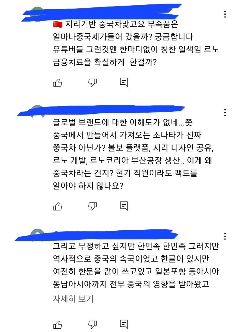 콜레오스는 중국차란 댓글에 중국 댓글부대 대댓