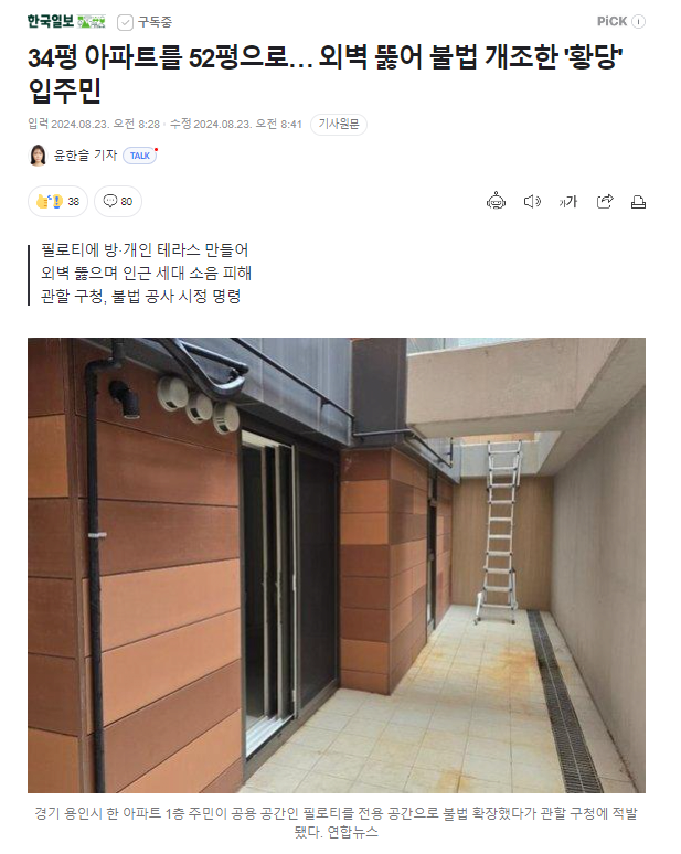 34평 아파트를 52평으로… 외벽 뚫어 불법 개조한 '황당' 입주민