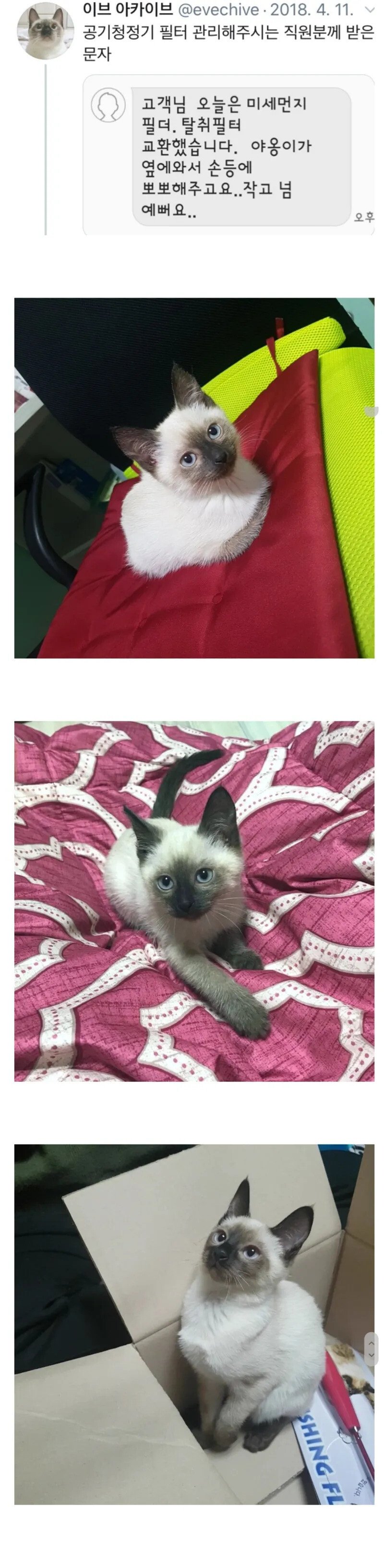 공기청정기 필터 관리 직원분이 보낸 문자.jpg