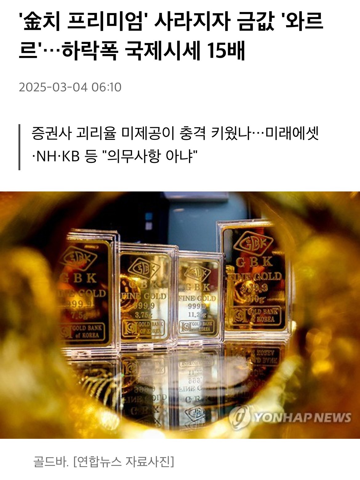 미친듯이 올랐던 국내 금값 근황 ㅎㄷㄷㄷ