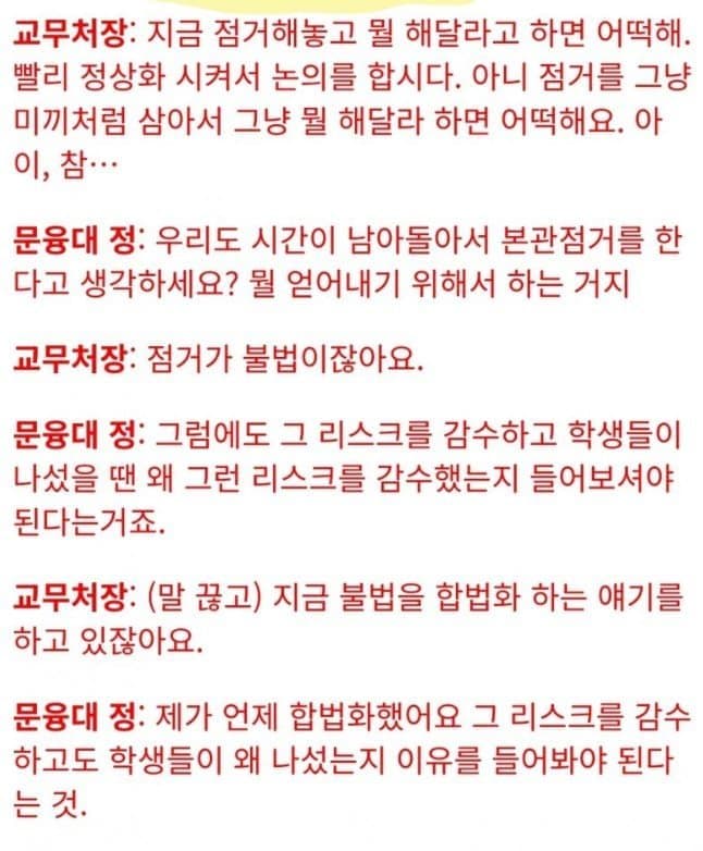 오늘 교무처장이 최대한 봐주려한게 나오는 대목