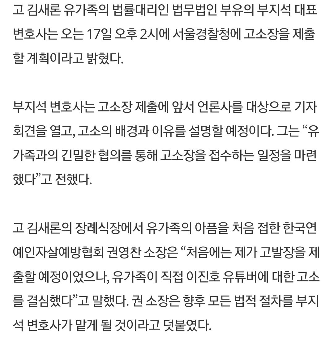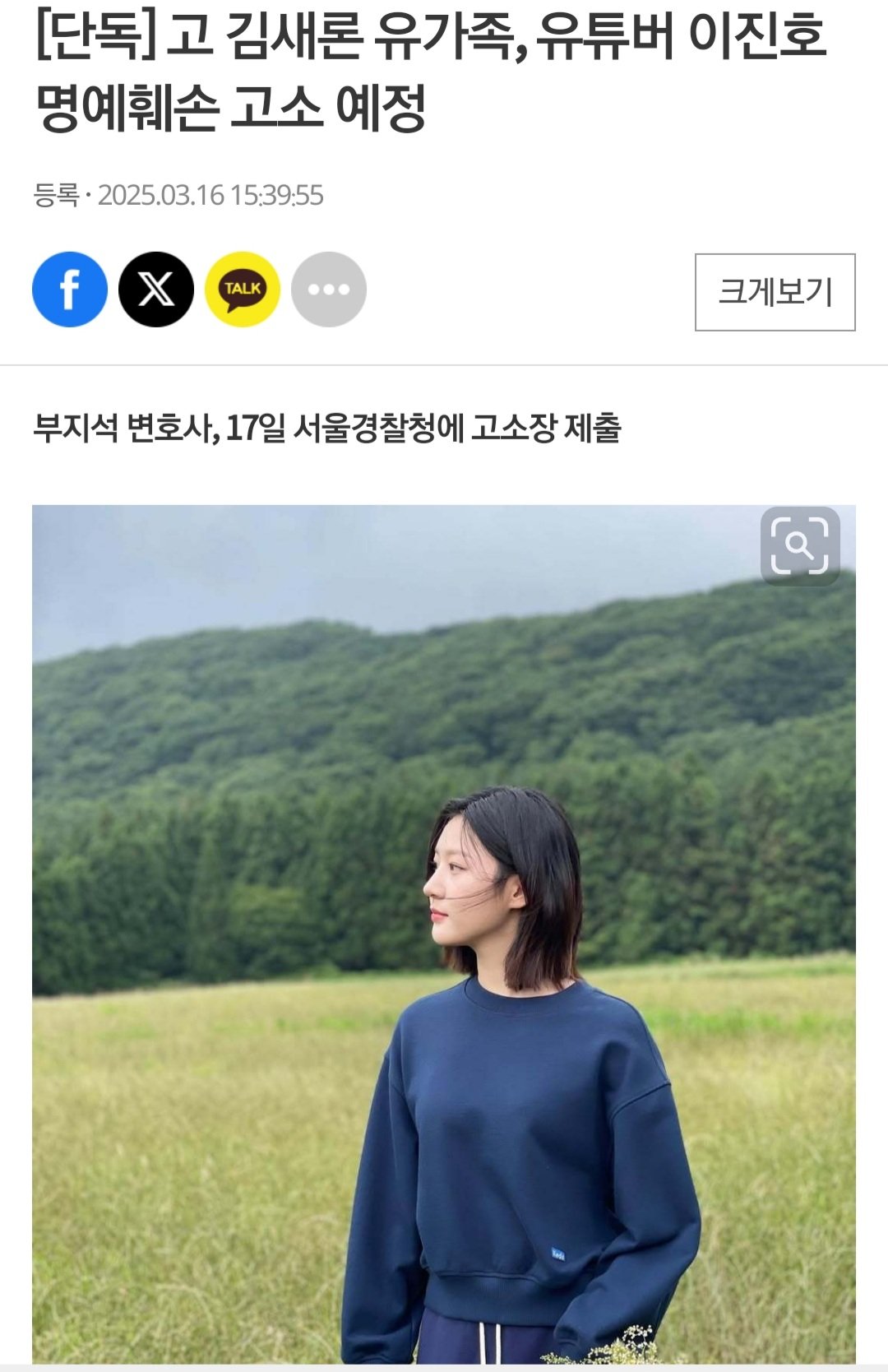 [단독] 고 김새론 유가족, 유튜버 이진호 명예훼손 고소 예정