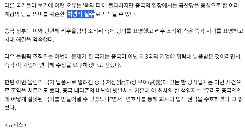 방송사 실수가 아닌, 올림픽 조직위의 실수라 사안이 다르긴 함.
