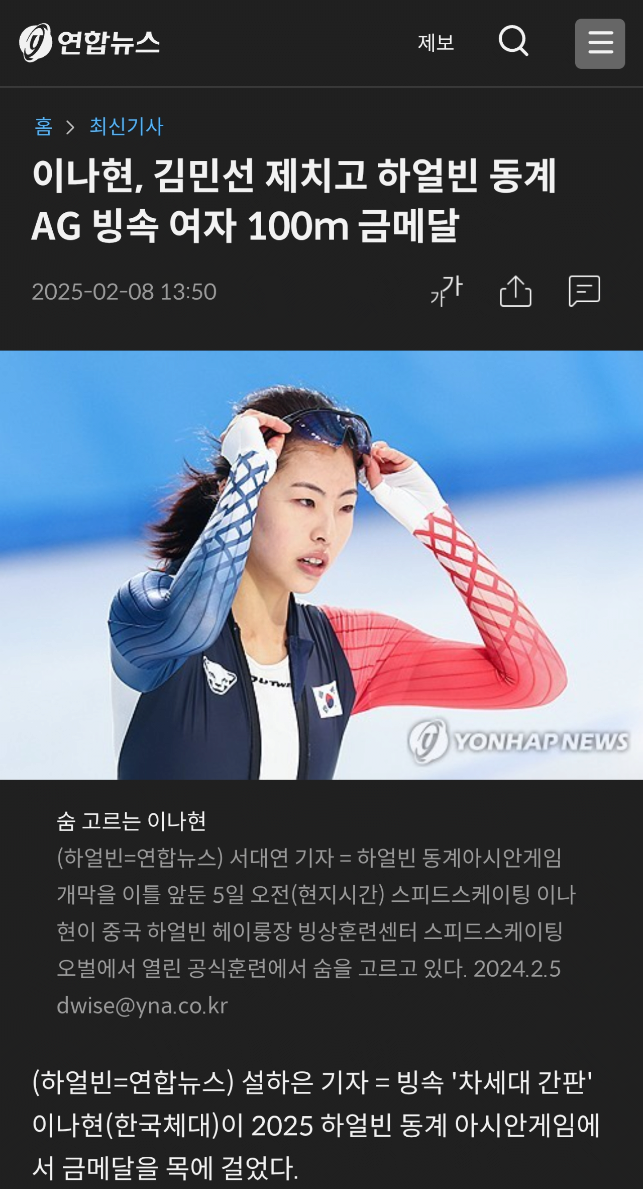 이나현, 김민선 제치고 하얼빈 동계 AG 빙속 여자 100m 금메달