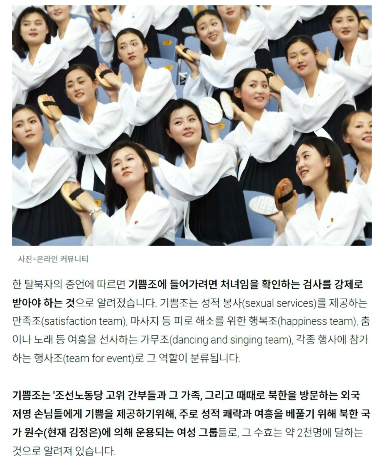 북한 기쁨조의 실태에 대해 알아보자