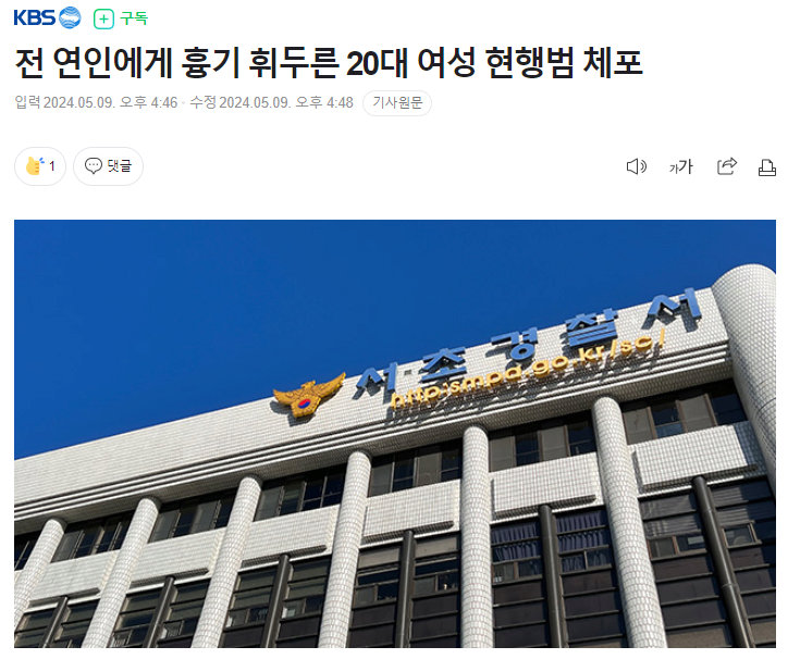 전 연인에게 흉기 휘두른 20대 여성 현행범 체포
