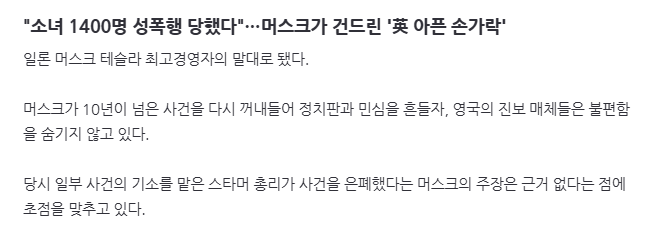 "소녀 1400명 성폭행 당했다"…머스크가 건드린 '英 아픈 손가락'