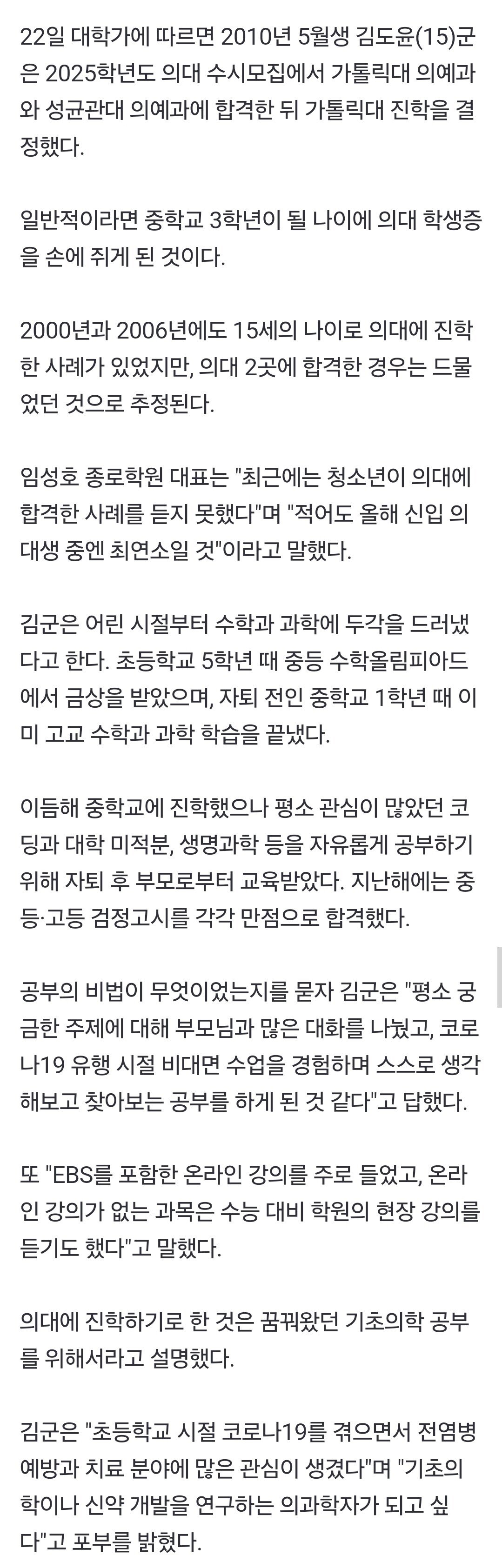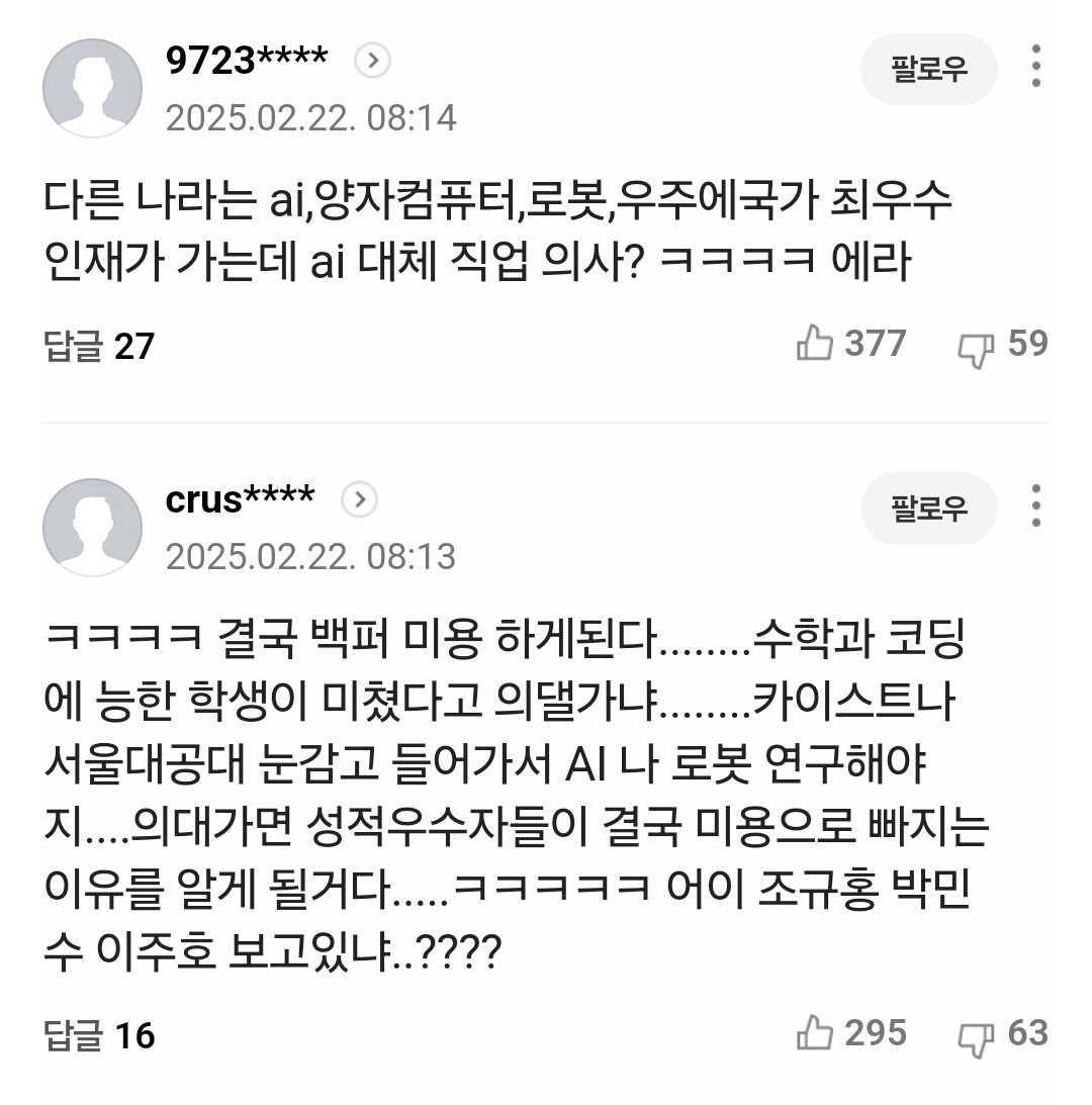 15살 의대 진학자에게 왜 이공계 진학 안하냐 뿔난 그분들