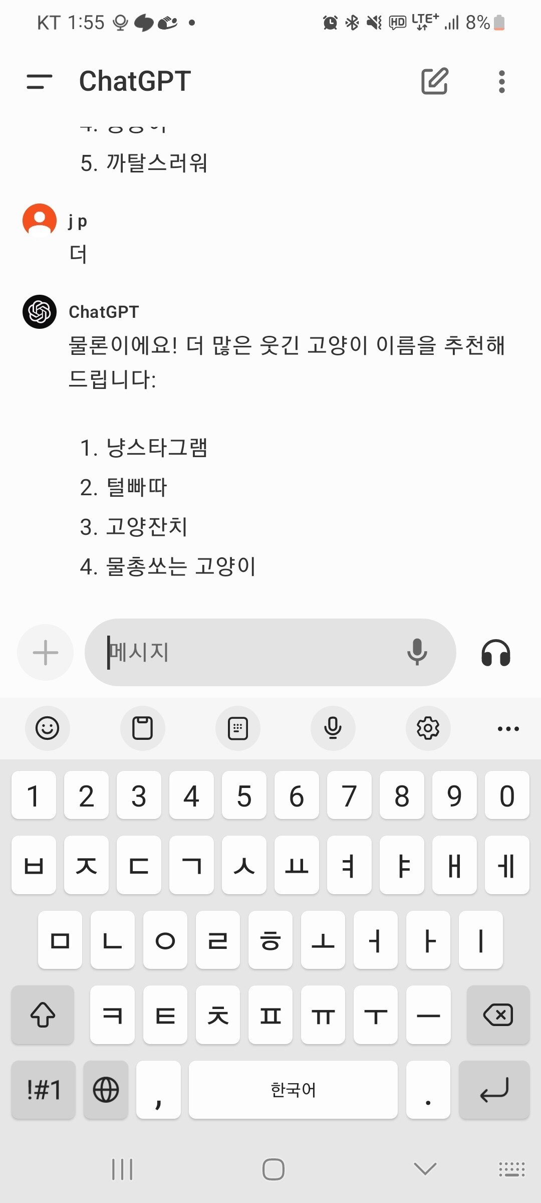 gpt한테 웃긴 고양이 이름 물어봤는데ㅋㅋ