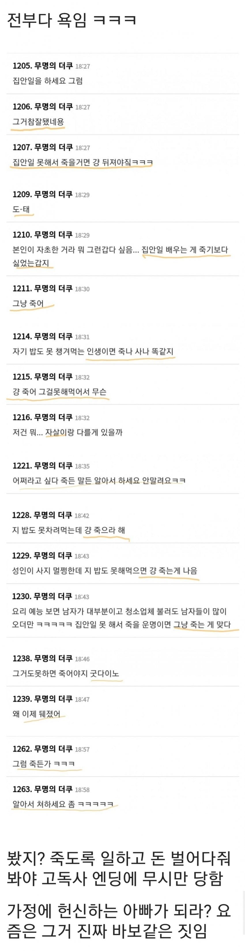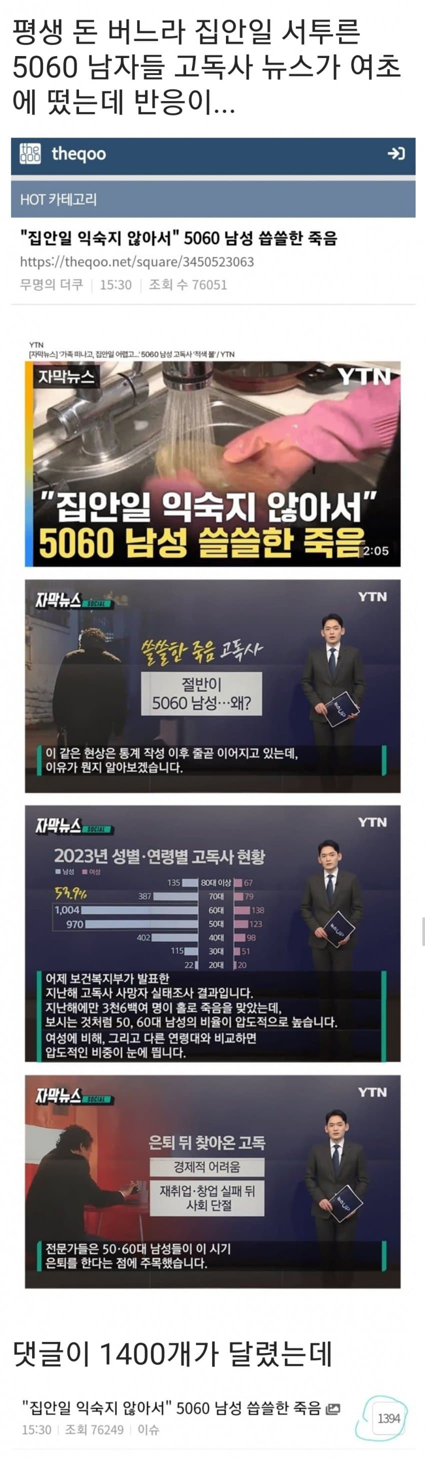고독사하는 5060 남성들 조롱하는 여초