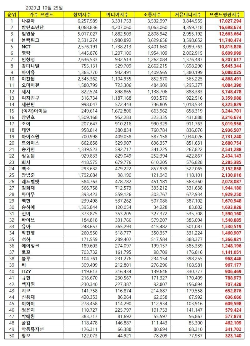 그 이후 가수 브랜드평가 당당히 1위 차지