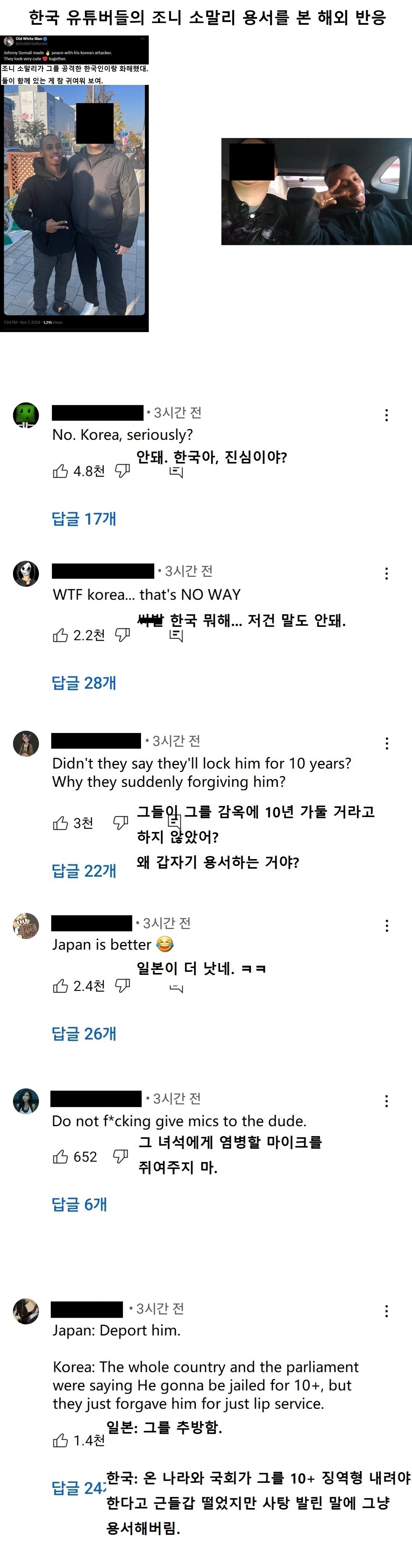 국제망신) 조니 소말리 대리용서 해외에 퍼짐