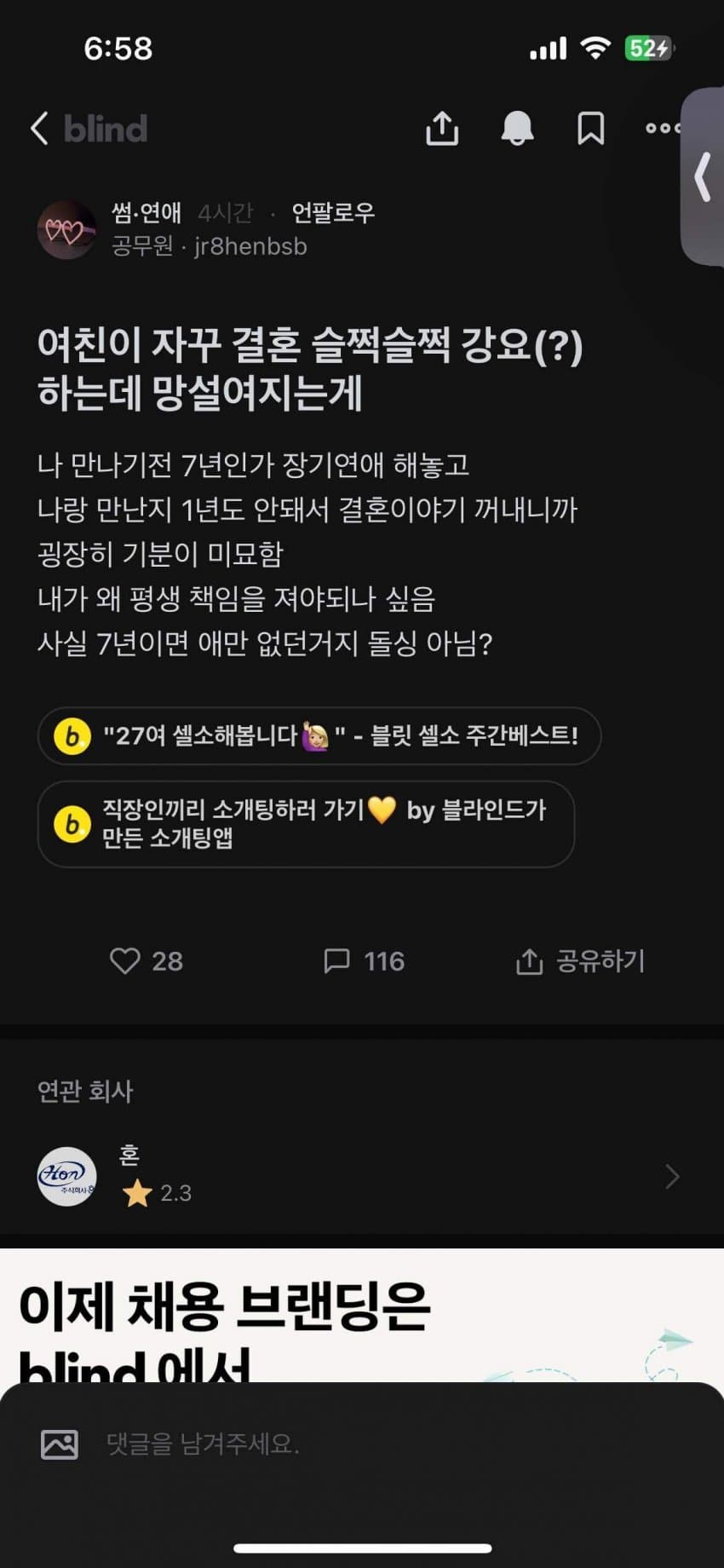 블라인드 '여친이 자꾸 슬쩍슬쩍 강요(?)하는데 망설여지는게