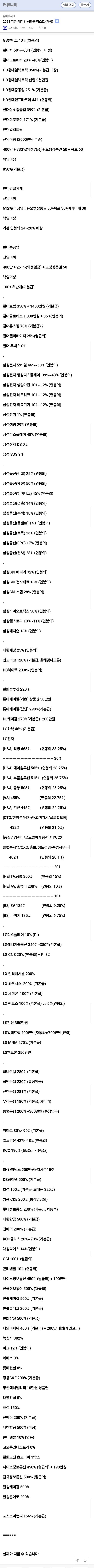 2024 대기업들 성과급 리스트 (퍼옴)