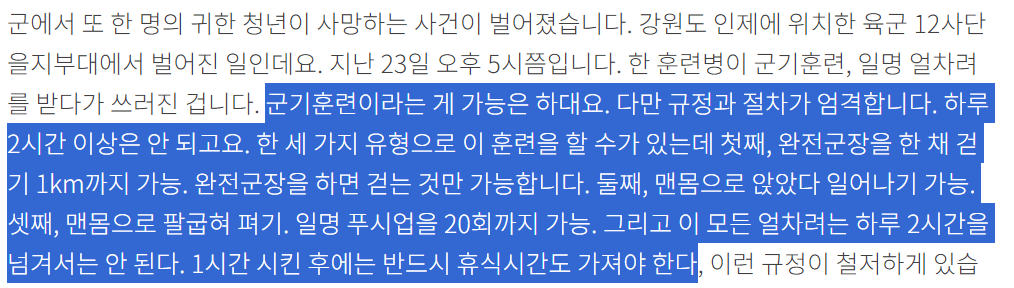 군인권센터 : 완전군장 상태로 선착순 뺑뺑이 돌려...