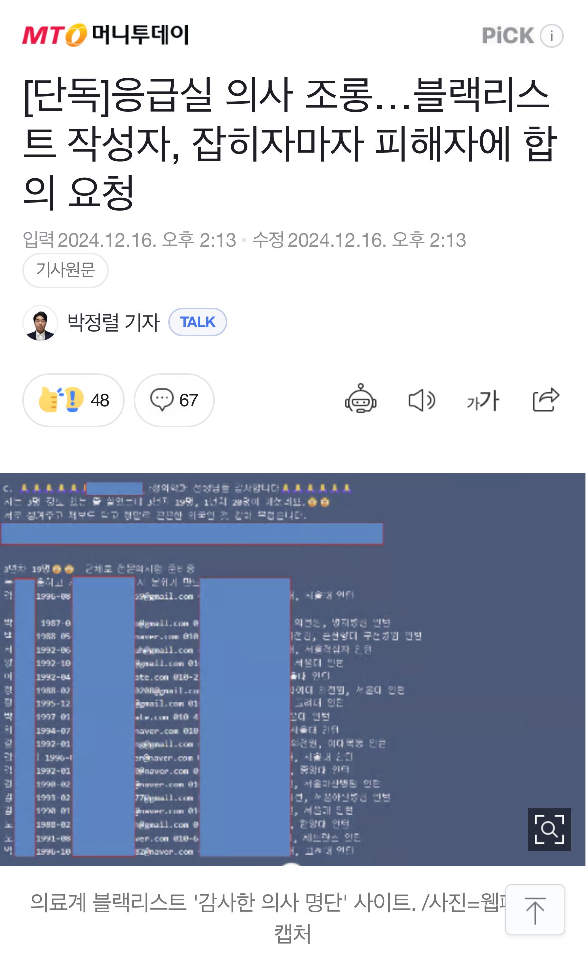 의사 블랙리스트 작성자, 잡히자마자 피해자에 합의 요청