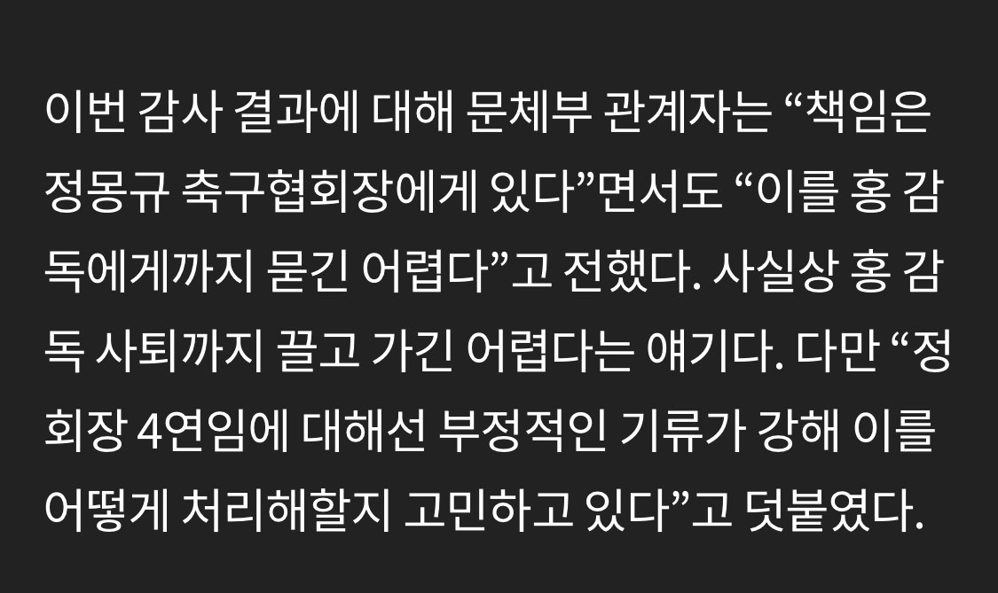 문체부 관계자 “감사 결과, 홍명보 감독에게 책임을 묻기는 어렵다”