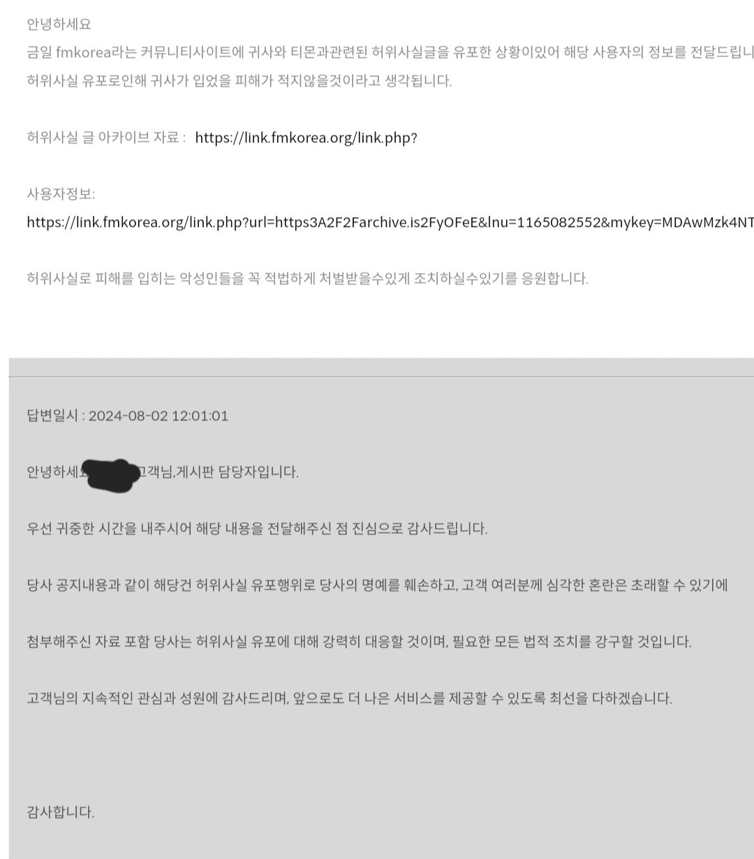 한성컴퓨터 담당자님 허위글 관련 대응 답변 받았다 ㅎㅎ