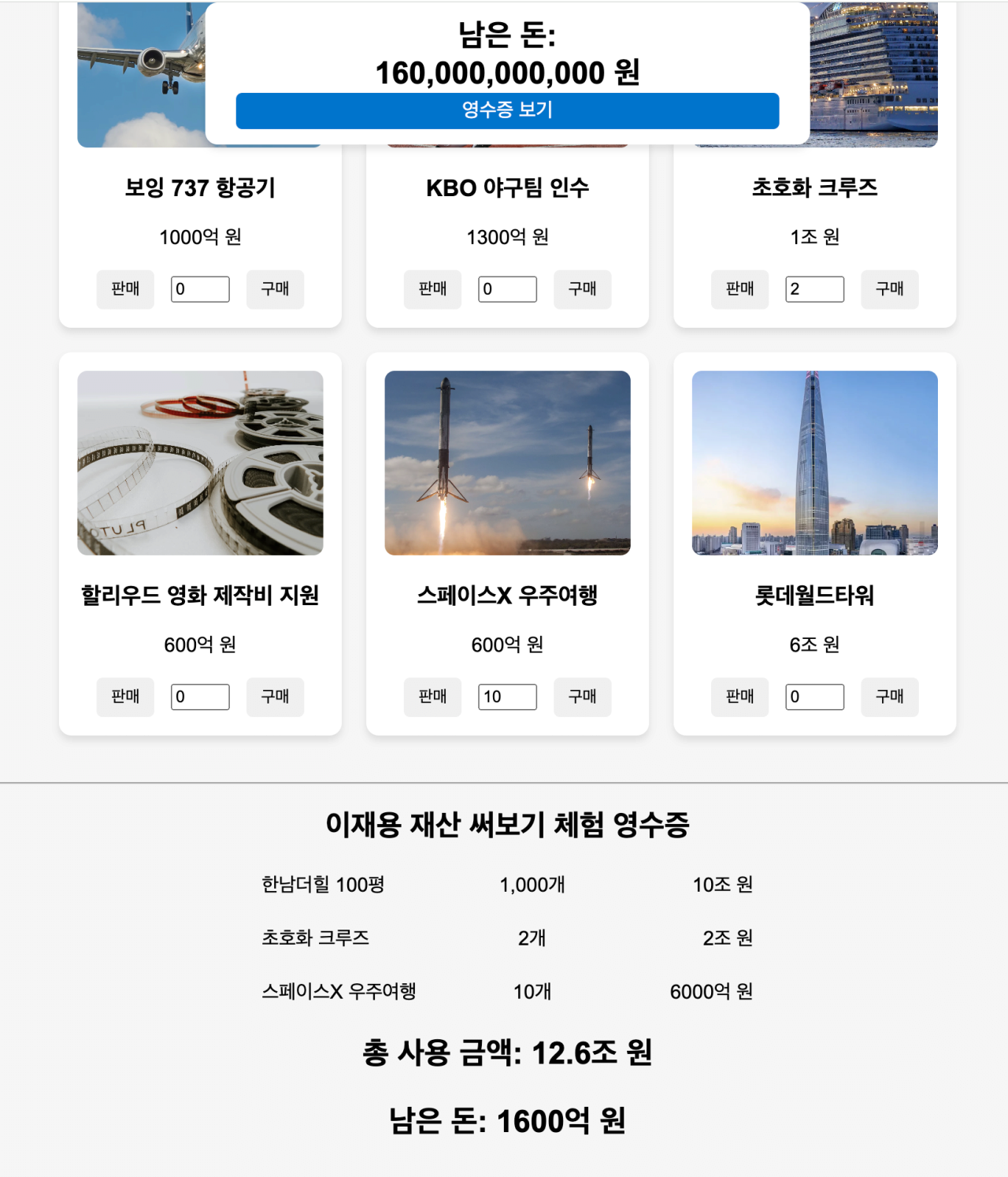 100평짜리 1000개 사고 초호화 크루즈선 2개 사고 우주여행을 10번 갔다와도 1600억이 남네 ㅋㅋ
