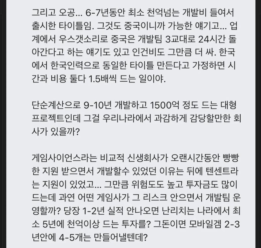 ???: 한국이 7년동안 천억 넘게 들여서 게임 만들겠냐