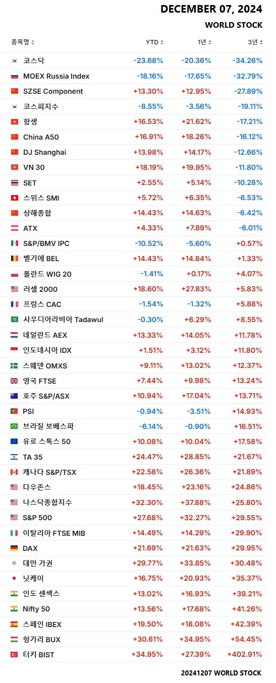 1년, 3년기준 모두 전세계 꼴찌 한국