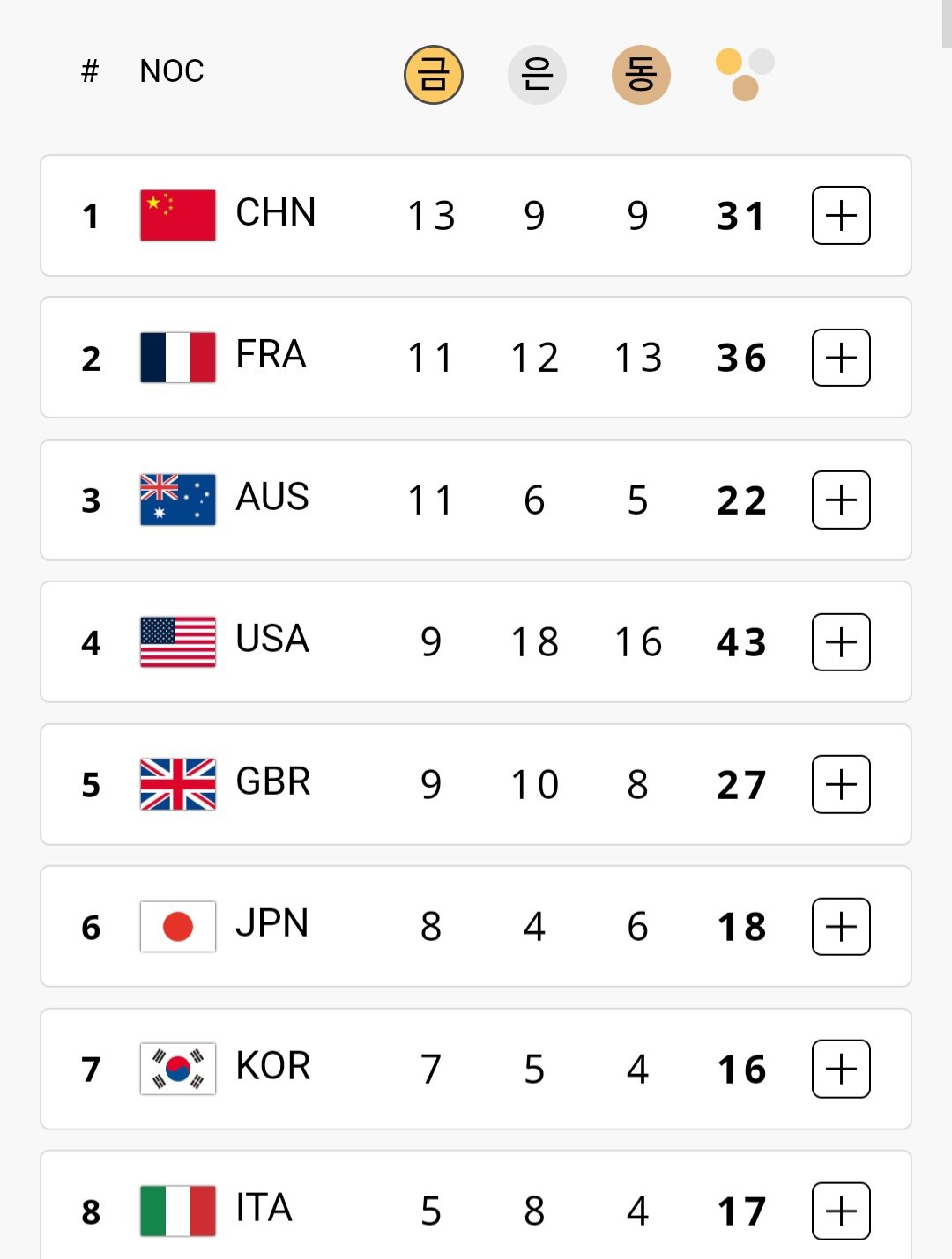 실시간 올림픽 순위 일본 제끼고 6위 ㅅㅅㅅㅅㅅㅅ