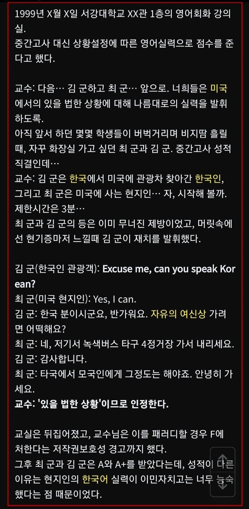 대학 영어회화 수업에서 A학점 받는 법 ㄷㄷ..jpg