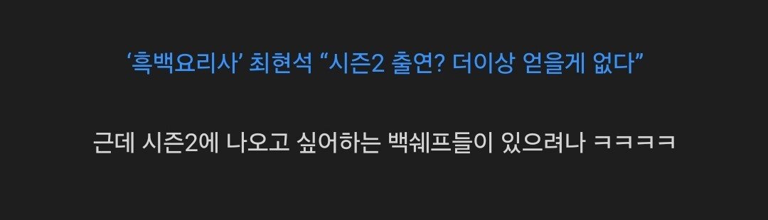 흑백요리사 최현석 “시즌2 출연? 더이상 얻을게 없다”
