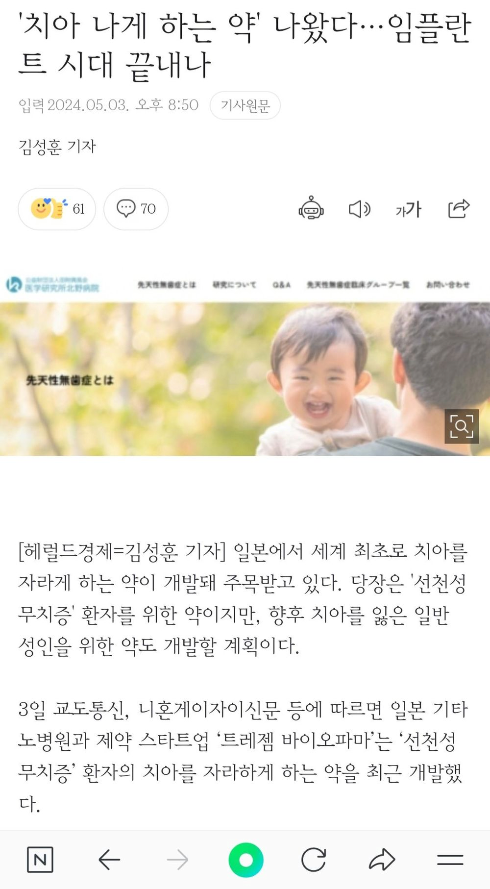 일본에서 세계 최초로 치아 나게 하는 약 나왔다…임플란트 시대 끝내나