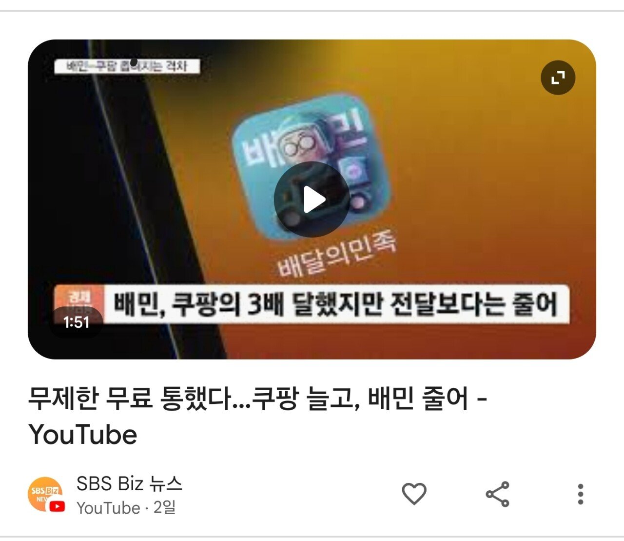 배달의민족이 쿠팡이츠랑 맞다이 뜨는중인데 쿠팡이 돈찍누로 배민 점유율 뺏고 있는중