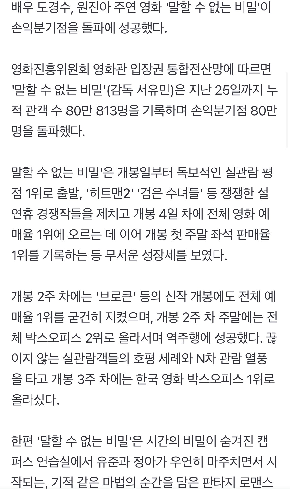 도경수도 해냈다…'말할 수 없는 비밀' 손익분기점 돌파