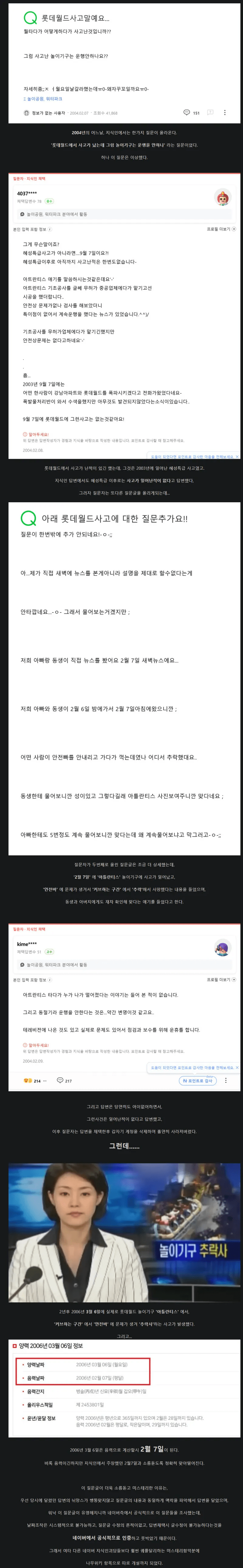 2004년에 어떤 유저가 지식인에 2월7일에 롯데월드 아틀란티스 사망사고 났는데 2월9일에는 운영하냐고 글을 올림